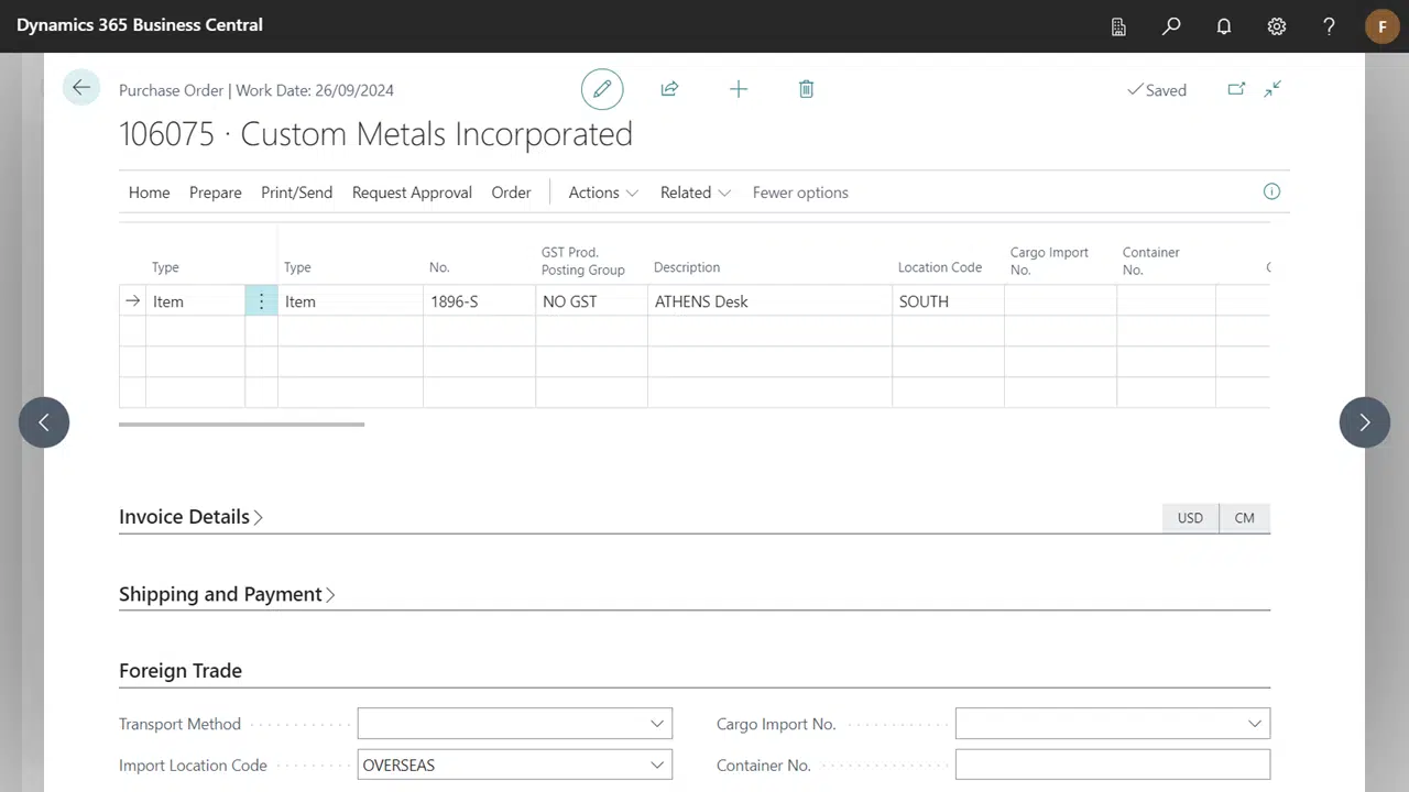 - Select Get Purch. Lines, this will suggest Purchase Order Lines with a matching Import Location Code.