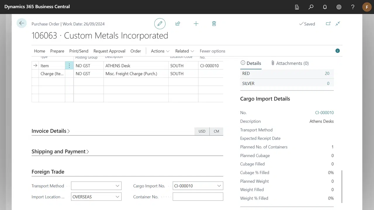 Once you have created your Cargo Import you can then link it to your Purchase Orders and Requisition Worksheets.