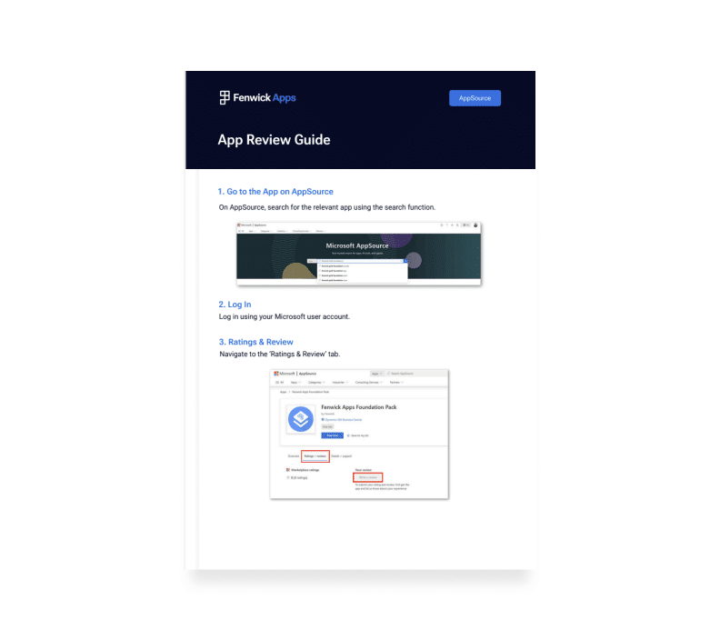 Love using Fenwick Apps? Our Review Guide makes it easy to share your experience and leave feedback on AppSource