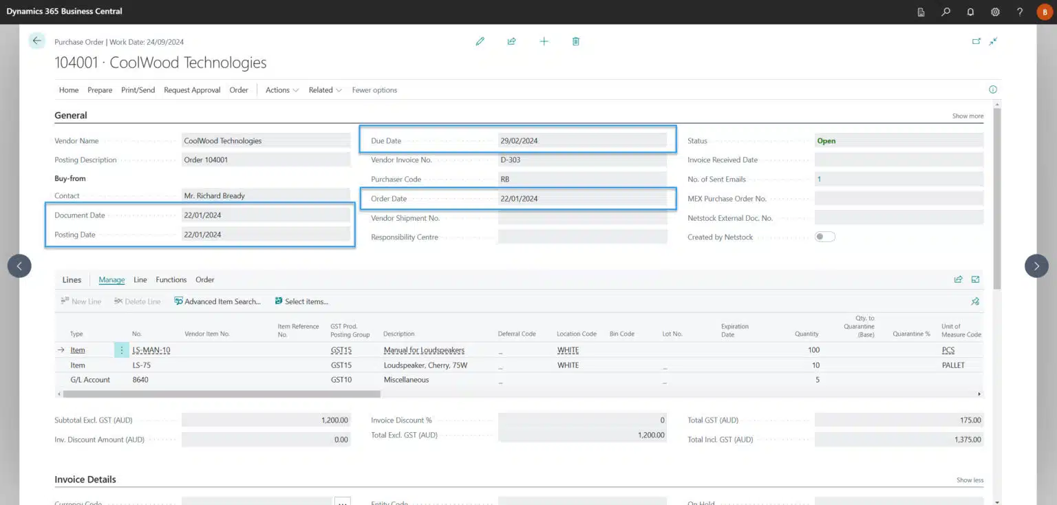 Over the coming months I will be releasing a series of articles around the Dynamics 365 Business Central Document Dates, starting with Purchase Orders. I hope to dispel some of the ambiguity of the date fields across all documents. In the next installment we’ll take a look at Sales Order dates.