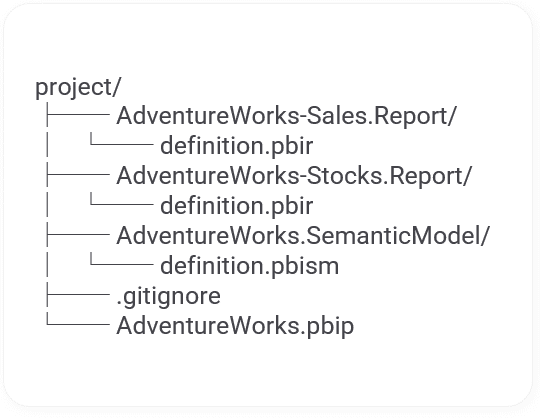 PBIP Anatomy: Power BI Projects now include separate folders for semantic models and reports, along with a gitignore file for clean repository management.