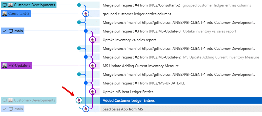 Finally, to integrate Microsoft’s latest change into our Customer-Developments branch we’ll Git: Pull from Main.
