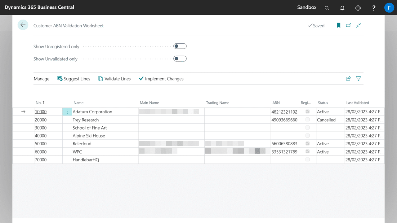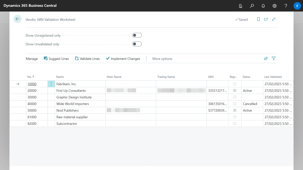 The batch worksheets validates all ABNs of the same record type. This will help identify and easily update inactive ABNs.