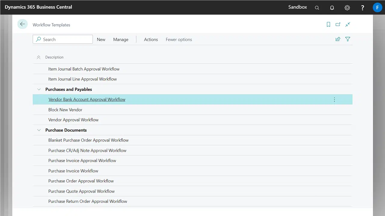 - Create new Vendor Bank Account Approval Workflow from the template.