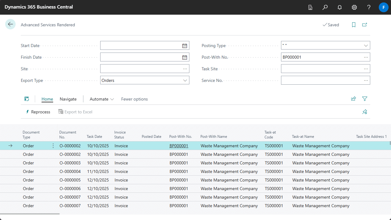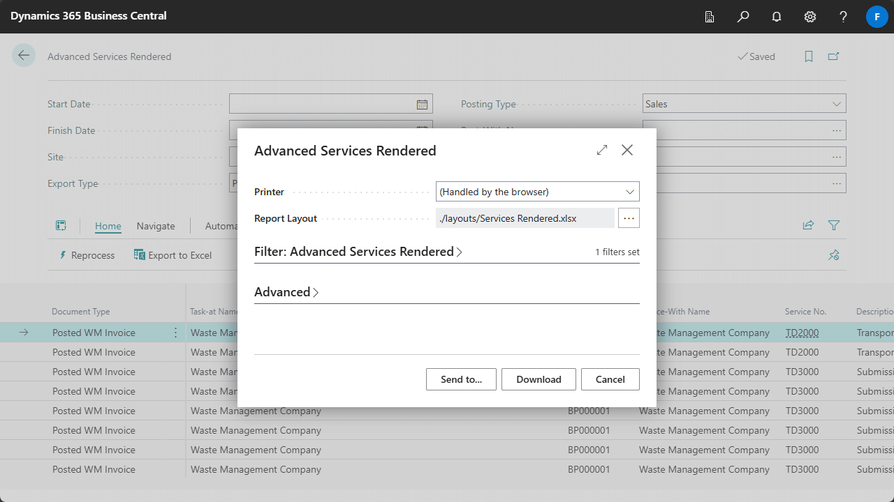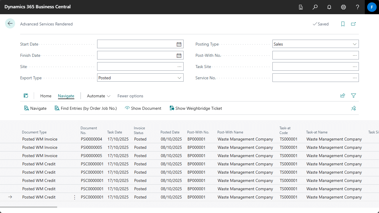 Advanced Services Rendered offers a platform within Dynamics 365 Business Central to view, report on, and extract data for all services provided. It brings together both tegossuite and standard documents into a single, consolidated view.