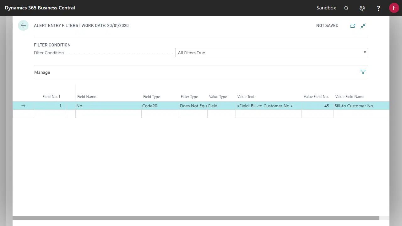 Field No. | The Field used to filter which Records will trigger an Alert |
