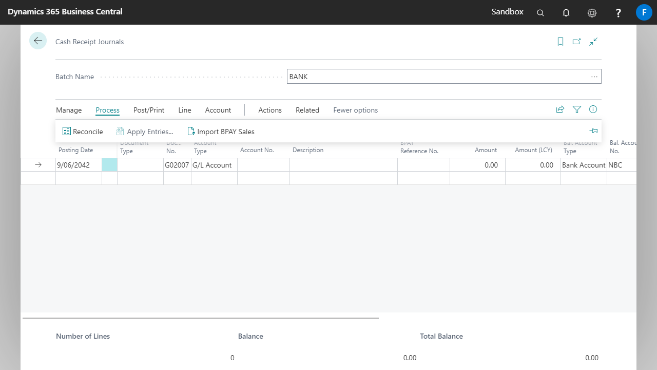 Use the Cash Receipt Journal to import BPAY files which will generate the associated journal lines.