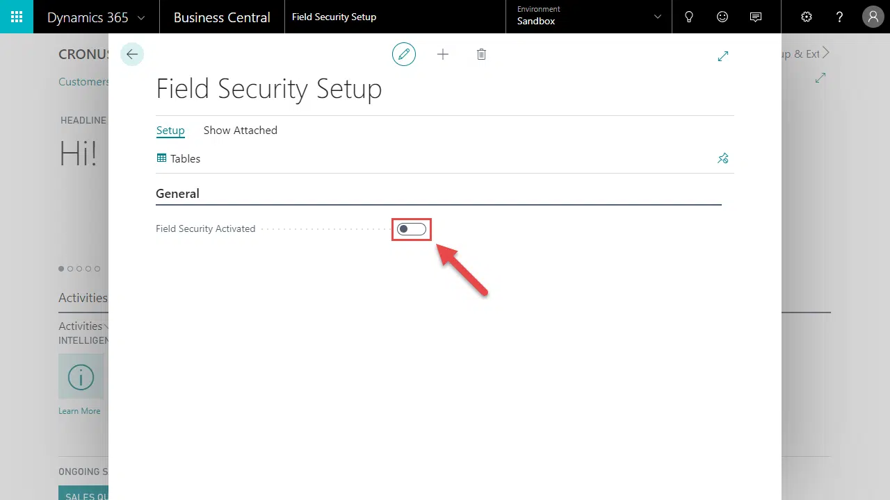 2. Toggle Field Security Activated.