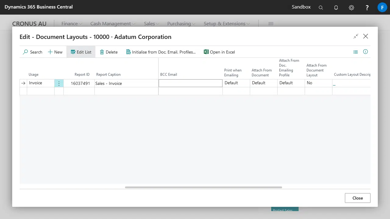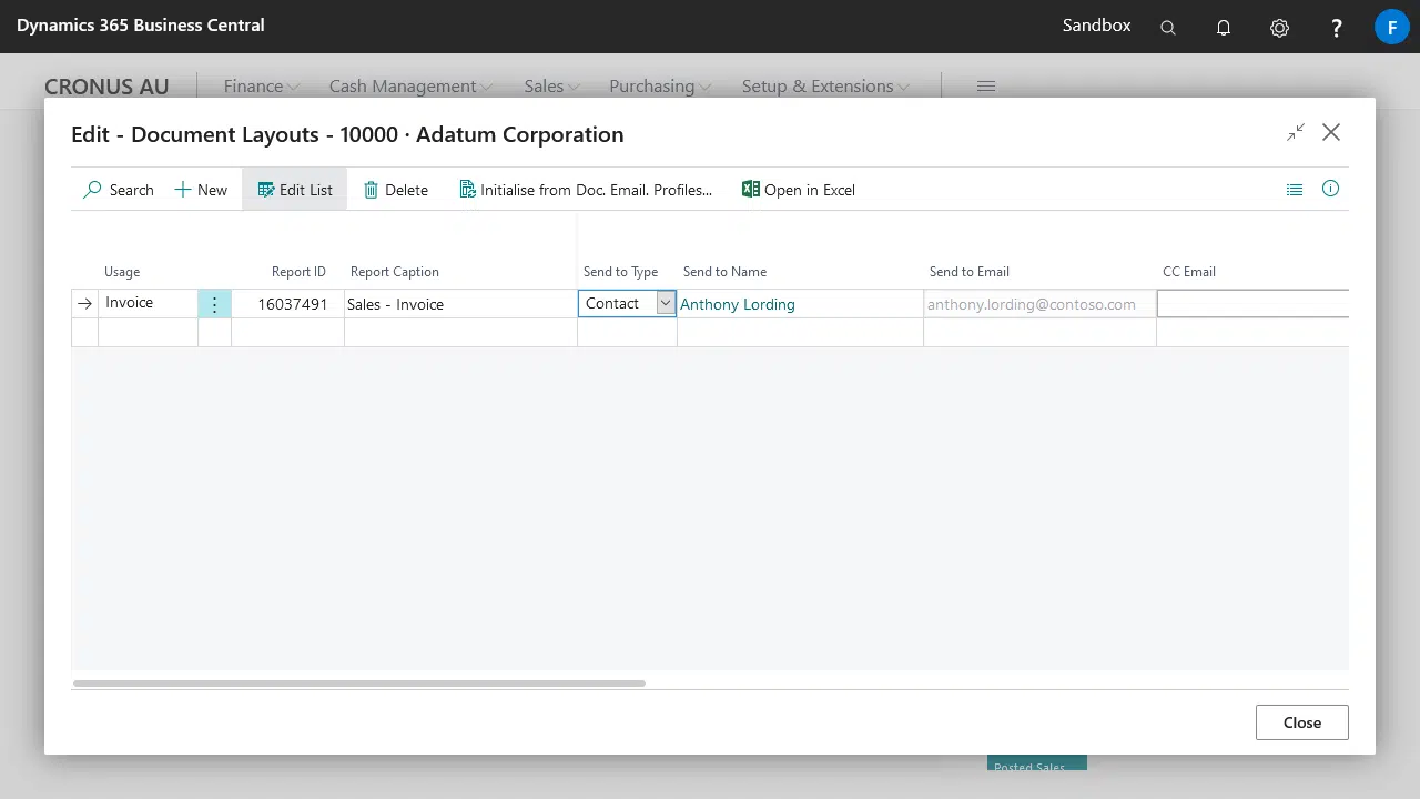 By standard, Dynamics 365 Business Central provides Document Layouts for each customer and vendor, allowing you to set up emailing specific to each customer or vendor.