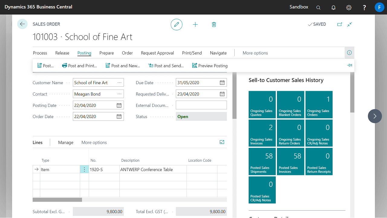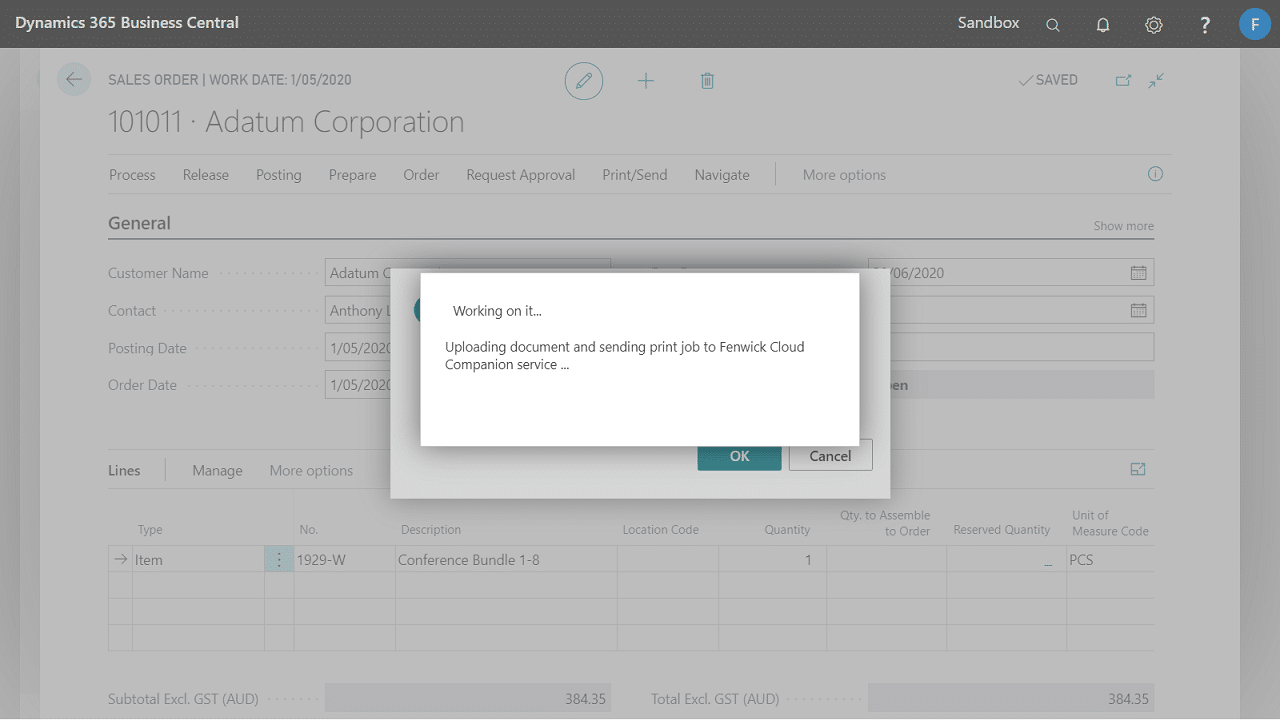Set a printer against select documents, and automatically print your sales documents when using the Post & Print action.