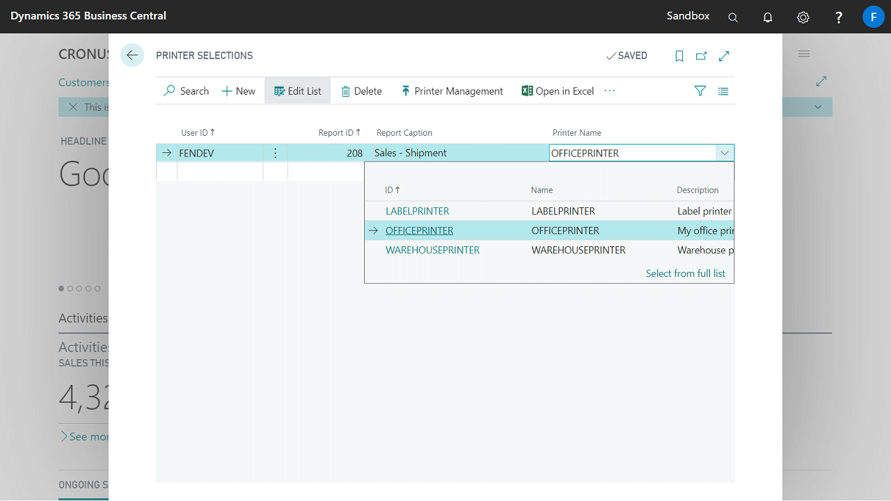 Organize and give your printers meaningful names so you can better identify their location and purpose. Works with standard Business Central printing.